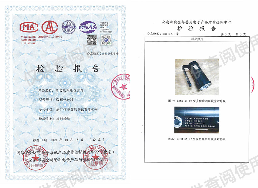 - 多功能測(cè)距搜索燈 檢驗(yàn)報(bào)告