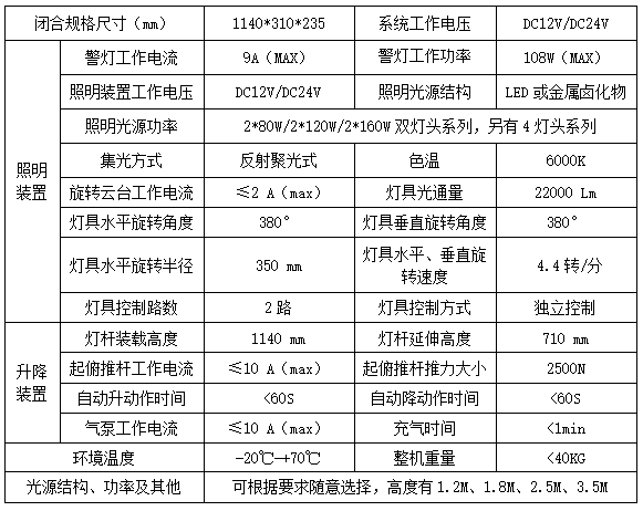 ● 背俯式升降照明燈是應(yīng)機動車應(yīng)急照明需要,以全方位無死角照明設(shè)計方案的一款自動升降折疊的車載照明設(shè)備,適用于公安、消防、救護、工程,救援,緝私等等各個領(lǐng)域作應(yīng)急照明裝置;