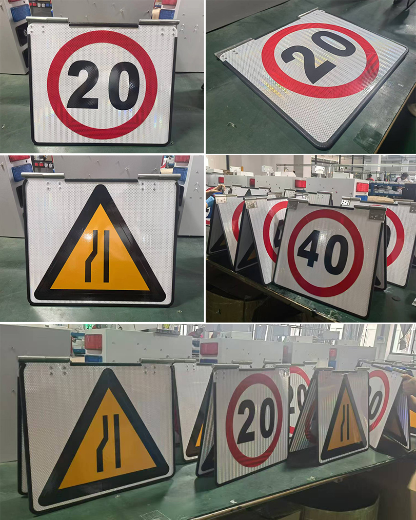 ● 警示牌內(nèi)容可根據(jù)需求定制:比如“交通管制”、“前方事故”、“警察臨檢”、“向右改道”、“向左改道”、“停車檢查”、“限速標(biāo)志”、“車道變窄”等