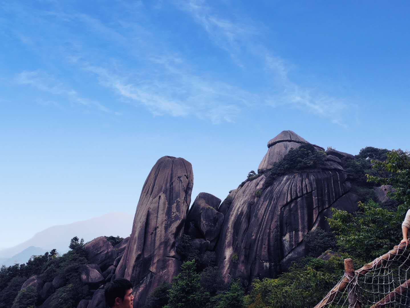 午餐過后,經(jīng)過一番修整,公司一行人隨機前往浮蓋山進行登山活動。浮蓋山是閩浙兩省界山,位于浙江省江山市廿八都鎮(zhèn)南面,浮蓋山的最大特色就是它的奇峰與怪石。游客在山下十余里外,遠遠就能望見石人峰如一位危冠高坐的仙翁在守護著三省邊境。