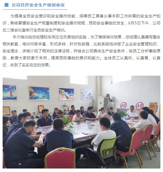 公司召開安全生產(chǎn)培訓會議 || 表彰嘉獎5月份優(yōu)秀員工 || 組織消防逃生應急演練