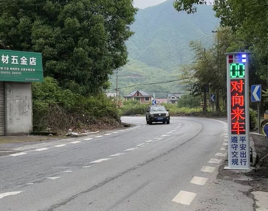 山區(qū)城鎮(zhèn)彎道多、路窄、上/下坡與彎道并存,特別在國(guó)省主干道的彎道上,車流量多,駕駛員存在視線盲區(qū),不能及時(shí)獲取彎道上對(duì)面行駛其他車輛的信息,一旦出現(xiàn)車輛占道情況,駕駛員緊急剎車不及時(shí)或者避讓不當(dāng)很容易導(dǎo)致交通事故頻發(fā)。針對(duì)這一現(xiàn)狀,我司開發(fā)出一種能檢測(cè)彎道上的車輛目標(biāo)、對(duì)車輛進(jìn)行測(cè)速,并將車輛信息反饋給駕駛員的彎道預(yù)警設(shè)備,有助于減少?gòu)澋郎系慕煌ㄊ鹿拾l(fā)生率。